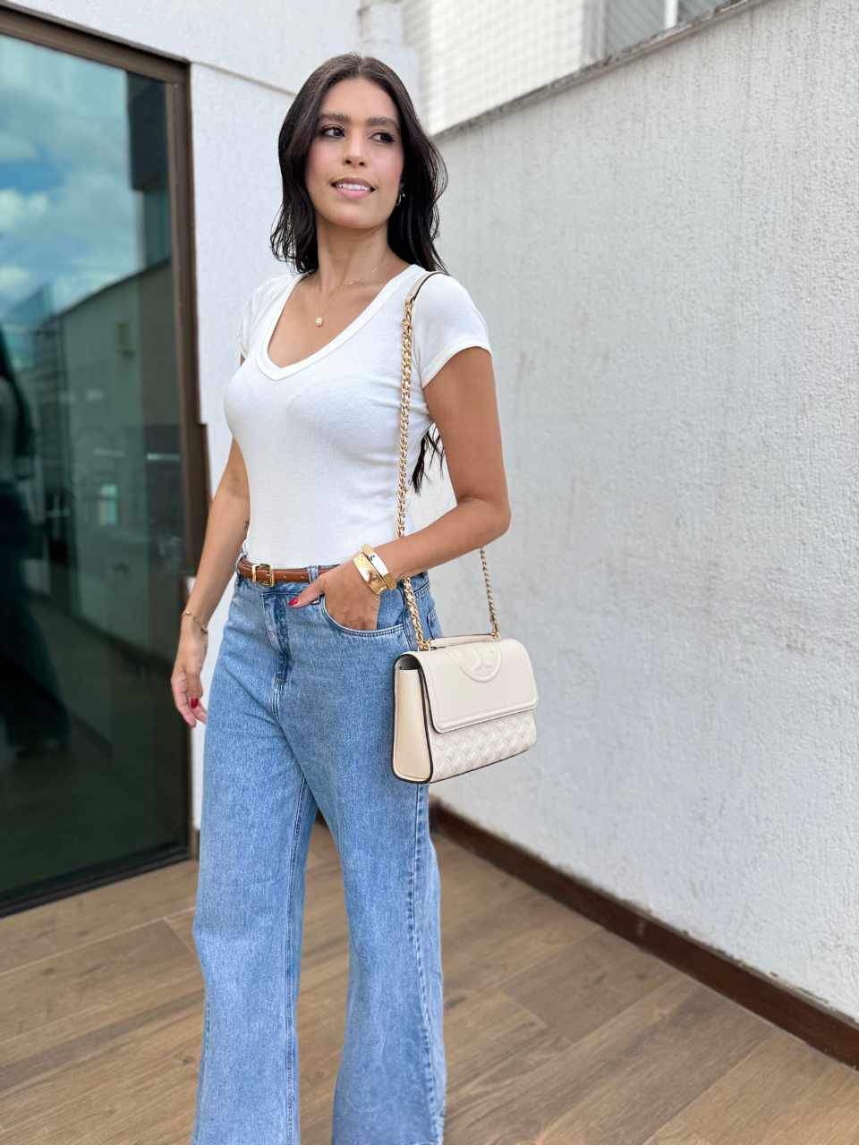 Body camiseta tem o decote em V, fechamento por colchete e malha com elastano proporcionando conforto no momento do uso. Ideal para looks casual ao estiloso.