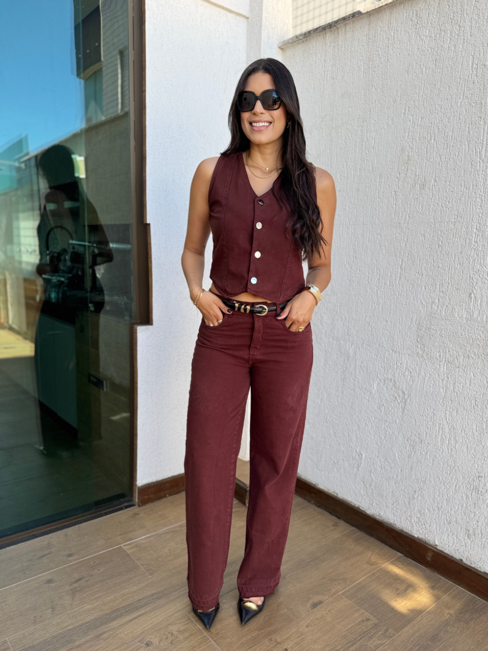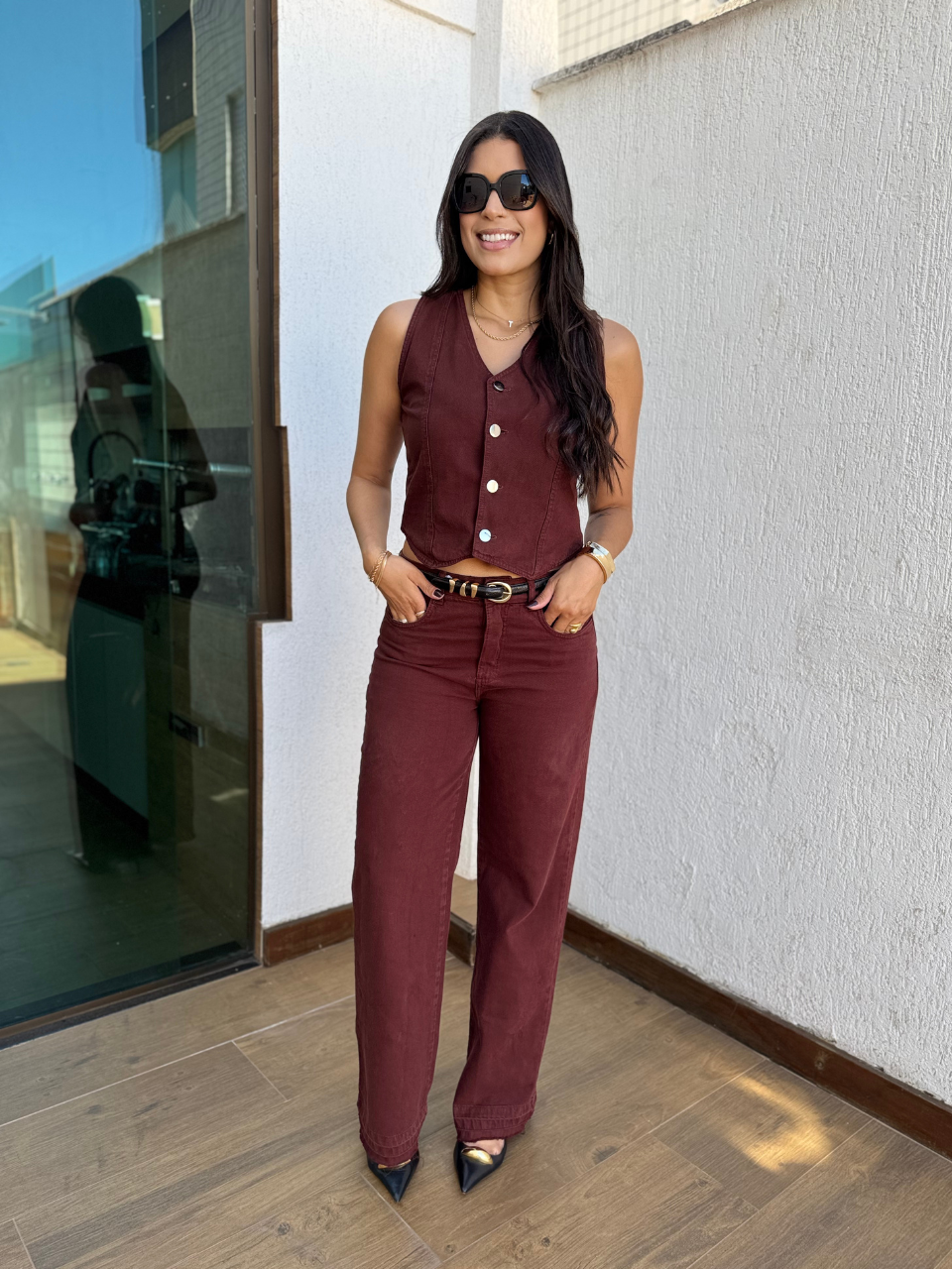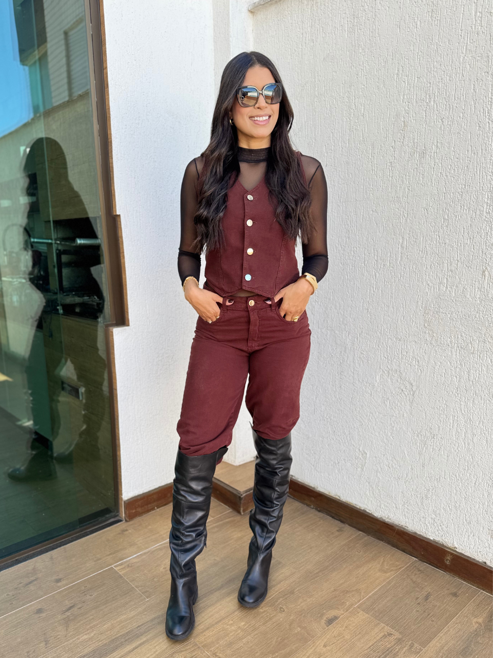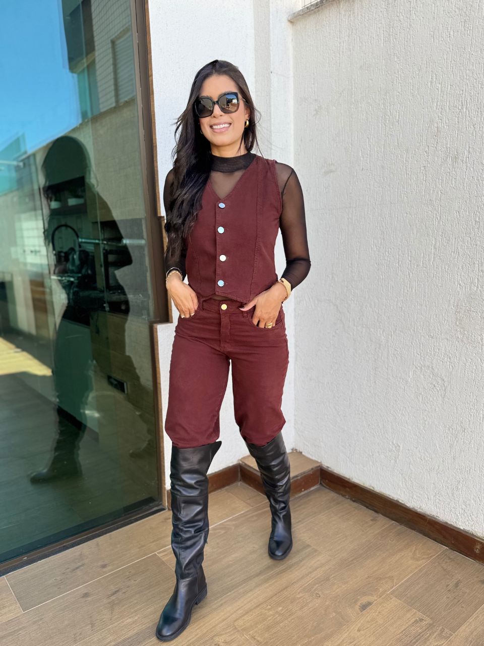 Tamanho 38 - Cintura 78-80cm/ Quadril 100-102cm / Coxa 60cm/ Comprimento 111cm