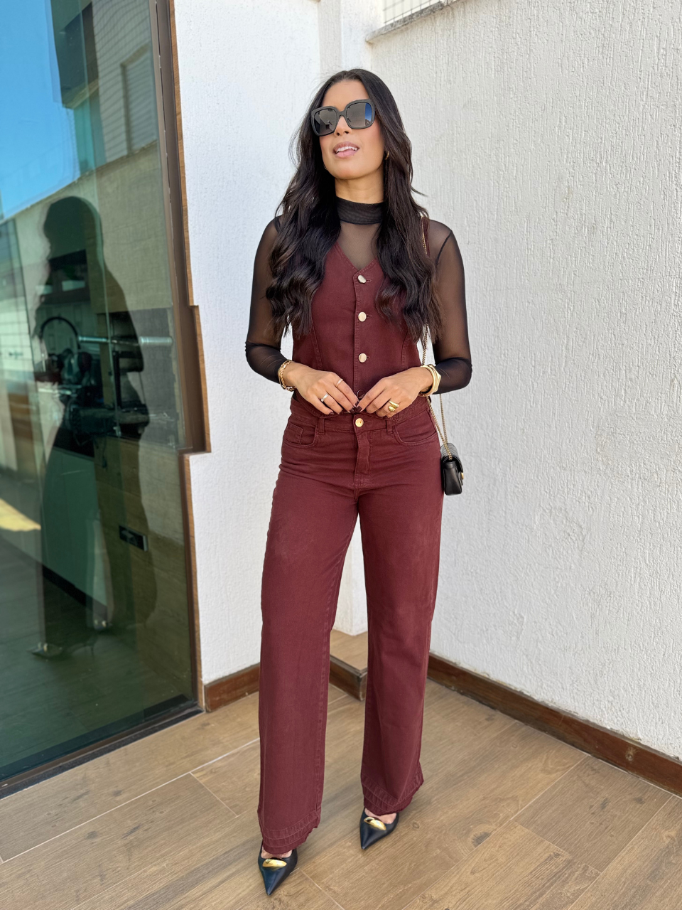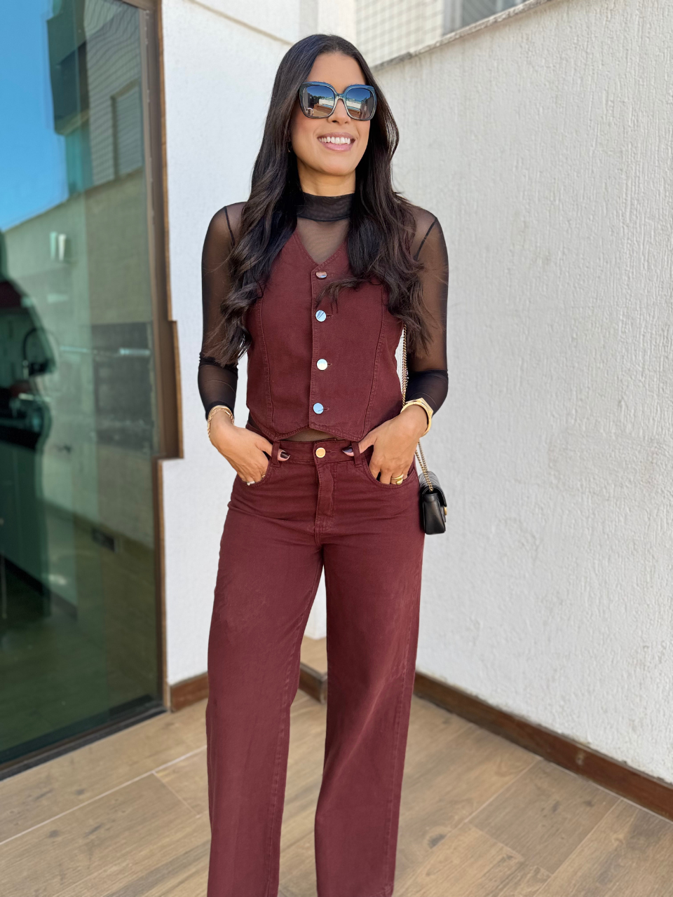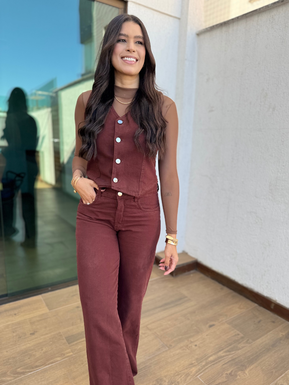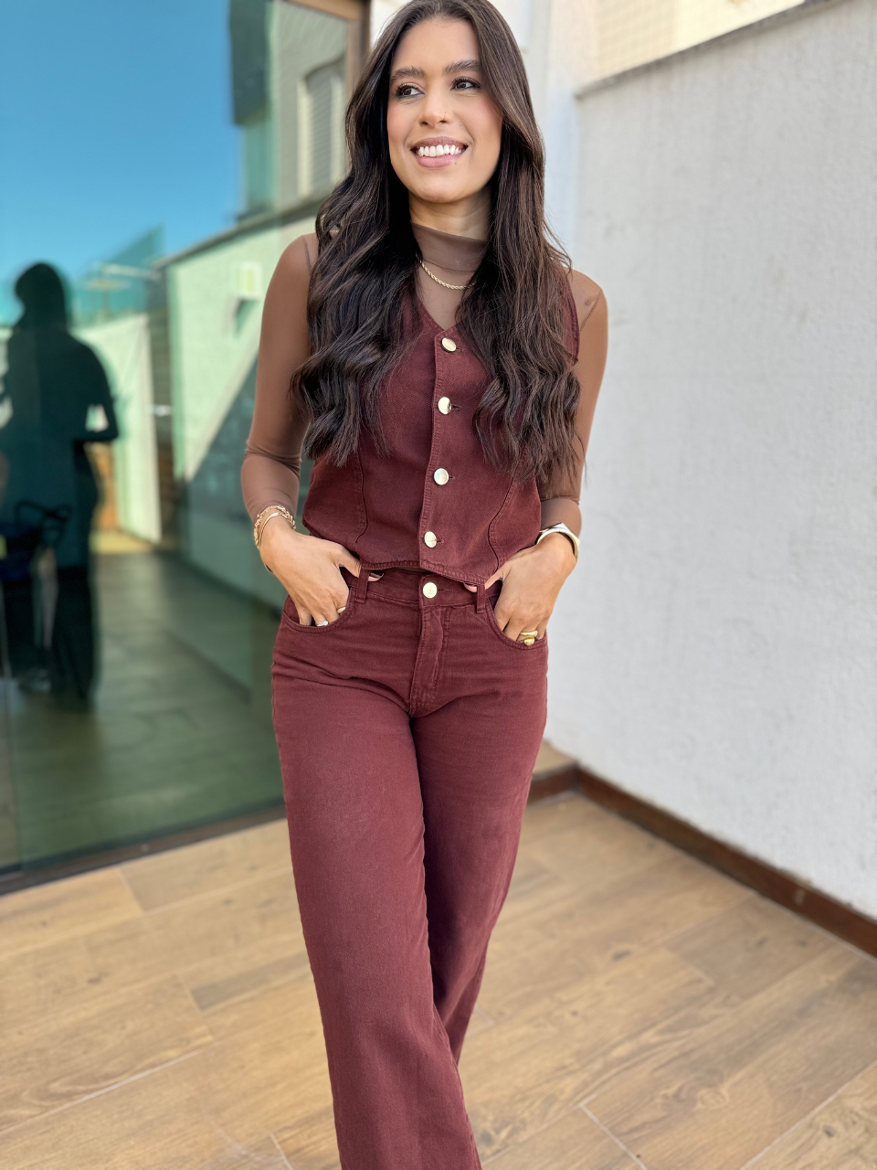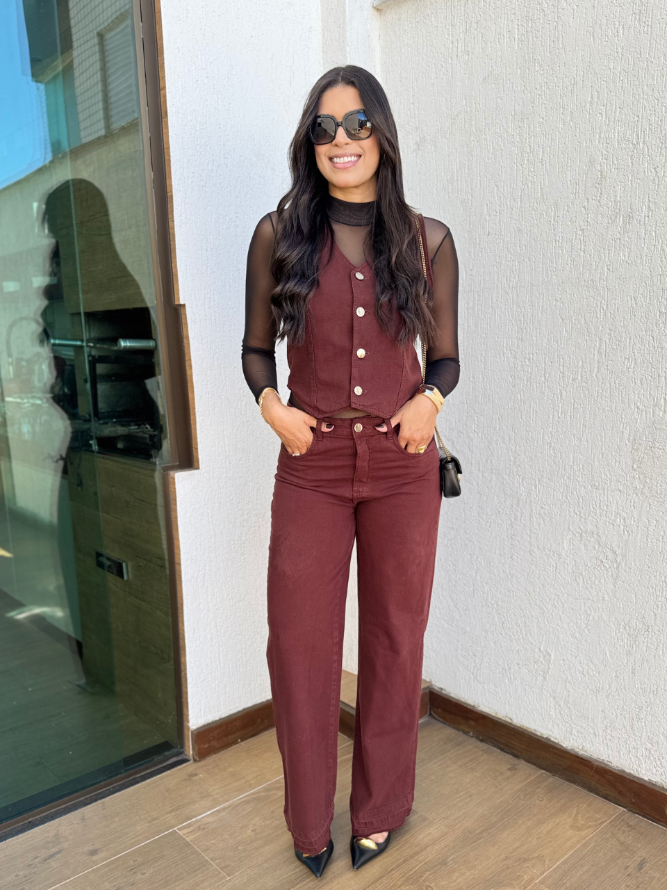 Tamanho 38 - Cintura 78-80cm/ Quadril 100-102cm / Coxa 60cm/ Comprimento 111cm